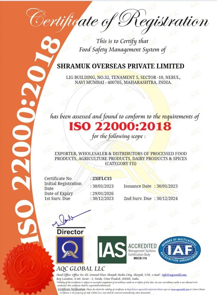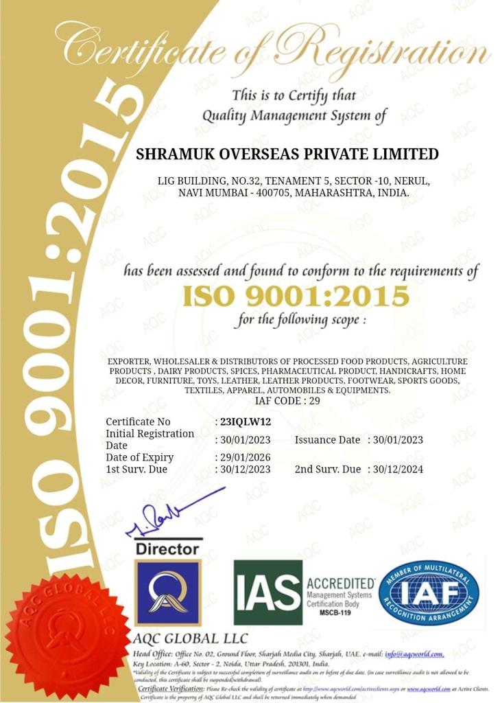 Shramuk Overseas is working in the areas of merchant import and export in India. Though there is no limitation for what we trade. Our main aim is to bring all Indian specialities, cultuer, taste, tradtion to the international market. Over the centuries, India is famous for certain specialities like Dry Fruits, Spices, Textile, hadicrafts, and other agricultural products and many more things. We are bringing all of them to our International customers.